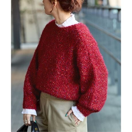 ポコポコとした見え感にフェザーのフワフワ感とゆるっとした雰囲気が可愛いく、カラフルでキャッチーな一枚着映えのタイプです。