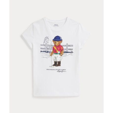 自分の名前の由来となったポロ競技にのぞむ人気のPoloベアのプリントをあしらい、Ralph Laurenのエクエステリアンなルーツを取り入れたコットンジャージーのTシャツ。・クルーネック・キャップスリーブ・フロント中央にPoloベア、馬、Polo Bear by Ralph LaurenとRalph Laurenの文字のプリント※商品の色味は、光のあたり具合など諸条件により色感が多少異なって見える場合がございますので予めご了承下さい。 【素材】・本体:綿 100%【生産国】マカオ