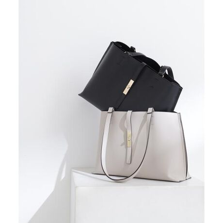 ※0175281700【エブリデイラージトートバッグ】の同型商品となります。ページ下部関連商品よりご確認いただけます。デイリー使いにおすすめの便利なトートバッグは、メタルを効かせたナローベルトがポイント。オフィスへの通勤に頼れる大容量で、14インチのノートパソコンやA4サイズの書類が横ですっぽり入るサイズ感。中は真ん中のファスナー収納を仕切りに3部屋に分けた、実用的なマチ幅もしっかりあるデザインで、中央にはお弁当箱も入る優れものです。表裏Wフェイスのフェイクレザーで仕上げているので軽量&程よいハリ感もあり、少ない荷物でもしっかり自立します。ハンドル部分はアウター着用時でも小脇におさまるショルダーの長さで、ハンドル付け根から外側に倒れるよう可動域をもたせているので、荷物の出し入れがスムーズ♪シーズンレスで活躍するカラー展開です。※モデルの着用画像の場合、光の当たり具合により、実際の色味と異なって見えることがございます。色味は、商品単体の画像をご参照ください。