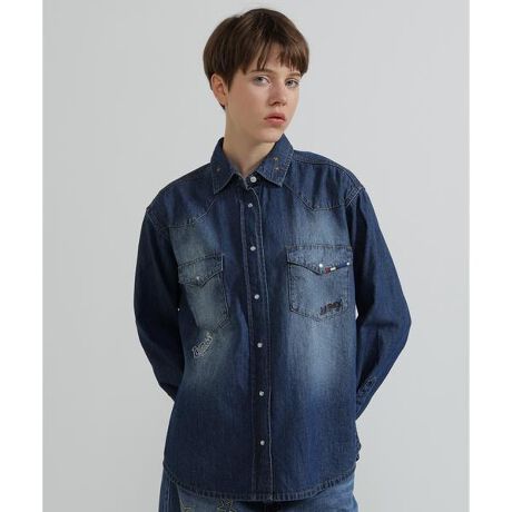 《WOMAN》DENIM SHIRT WITH GRAFFITI PRINT