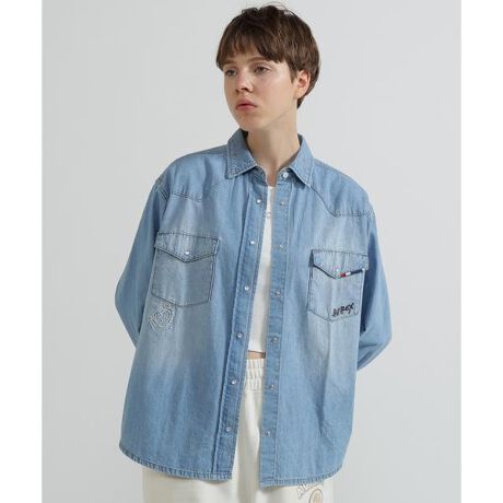 《WOMAN》DENIM SHIRT WITH GRAFFITI PRINT