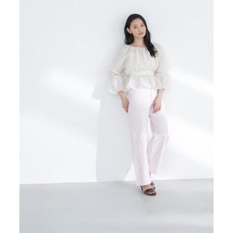 脚まわりはゆとりがあって肉感を拾いにくく、腰まわりは華奢見えするコンパクトなサイズ感に仕上げました。シルバーカラーの金属を使いスタイリッシュな印象に。甘めなトップスやキレイめジャケットとの甘辛MIXコーデもおすすめです。<素材>洗いの加工感がキレイに映えるデニム素材を厳選。デニムの織り目はしっかりありつつも、縦にスラブが立ちすぎてない表面感なので加工後もハードになり過ぎず、ブリーチやブラストも全体的に馴染んだ上品な印象です。柔らかい仕上がりの生地感で着心地も良いです。<詳細>仕様・前釦とファスナー裏地・なし透け感・なし / 光沢・なし / 伸縮性・なし 生地の厚さ・普通デニム製品は摩擦により色移りする可能性がございます。白や淡色系衣料品や雑貨などご着用の際は十分にご注意ください。※モデルの着用画像の場合、光の当たり具合により、実際の色味と異なって見えることがございます。色味は、商品単体の画像をご参照ください。