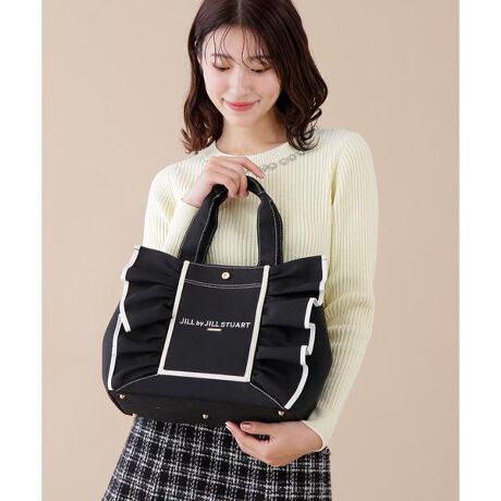 JILL by JILL STUARTのアイコンバッグ「フリルトート」5周年を記念して登場!ボリュームあるワイドフリルと額縁のような配色テープディテールがポイント。従来のフリルバッグとは異なるロゴの書体とサイズ、フリルも大人っぽく仕上げています。ハンドル部分には合皮素材を合わせて、品の良さと実用性も兼ね備えました。両脇にはスナップボタンが付いているので、荷物の収納量に合わせてフォルム調節ができます。中は便利なポケット付き。※撮影時照明の関係により、色味が違って見える場合がございます。またパソコン・スマートフォンなどの環境により、若干製品と画像のカラーが異なる場合もございます。予めご了承ください。商品の色味は、商品単品画像をご参照下さい。※商品画像はサンプルのため、色味やサイズ等の仕様に変更がある場合がございますので、予めご了承ください。