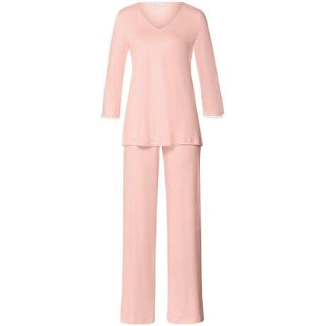 [型番:NIH440]ディテールにまでHANROのこだわりがつまった、コットン好きの方のためのパジャマトップスの袖は7分丈デザインシルクのような上品な光沢を生むシルケット加工をほどこした、身生地コットン100%のなめらかなスムース素材を使用袖口にあしらった波形の曲線を描くファッショナブルなスカラップレースは、HANROのデザインチームがオリジナルで制作したオーストリア製のもの