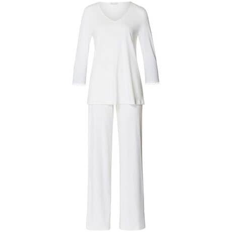 [型番:NIH440]ディテールにまでHANROのこだわりがつまった、コットン好きの方のためのパジャマトップスの袖は7分丈デザインシルクのような上品な光沢を生むシルケット加工をほどこした、身生地コットン100%のなめらかなスムース素材を使用袖口にあしらった波形の曲線を描くファッショナブルなスカラップレースは、HANROのデザインチームがオリジナルで制作したオーストリア製のもの