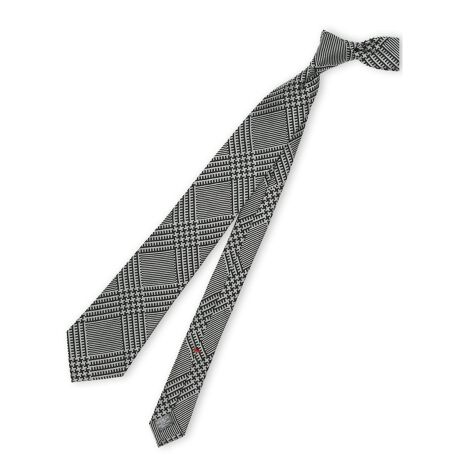 柔らかさと適度なハリ・コシを兼備した高品質なシルク素材を使用しています。ジャガード織りの大柄チェック&千鳥格子柄で、奥行きのある表情と自然な立体感が特徴です。