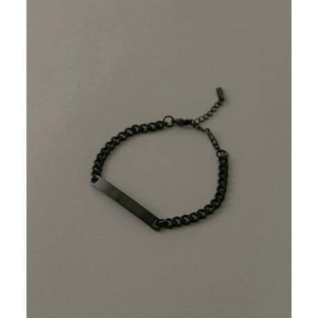 チェーンからプレート、留め具まで全てをブラックカラーで統一したブレスレット。