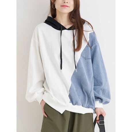 デニム×裏毛の異素材使いがこなれカジュアルを演出するパーカー