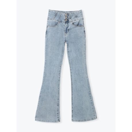 3連ボタンハイウエストフレアデニムパンツ(丈長め)