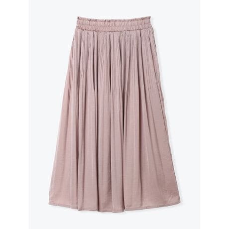 [型番:25550723876]繊細な光沢をまとったサテン素材がやわらかな表情を生むロングスカート。たっぷり入れたギャザーが、広がりすぎず自然な落ち感を演出します。ニットやスウェット合わせでラフに、ブラウス合わせで上品にも着こなせる一枚です。