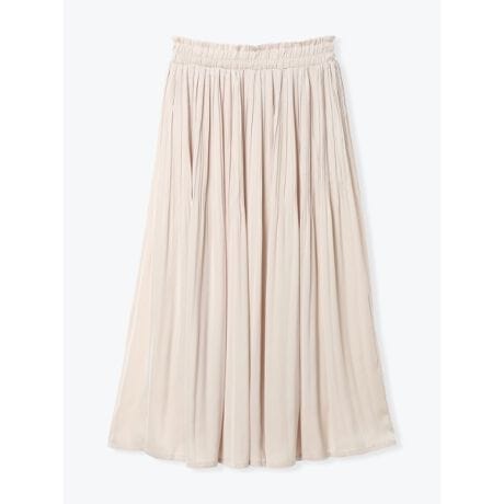 [型番:25550723876]繊細な光沢をまとったサテン素材がやわらかな表情を生むロングスカート。たっぷり入れたギャザーが、広がりすぎず自然な落ち感を演出します。ニットやスウェット合わせでラフに、ブラウス合わせで上品にも着こなせる一枚です。