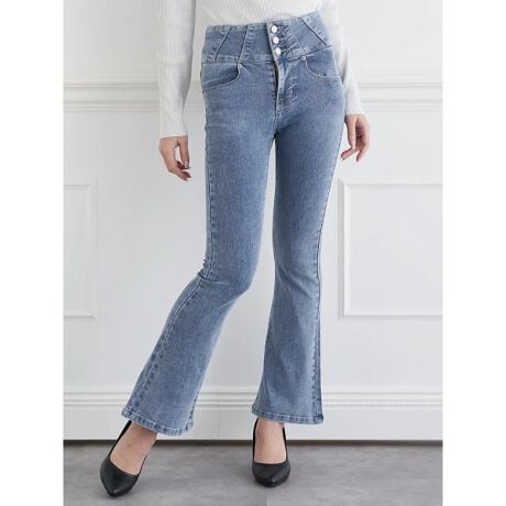 裾に向かって広がるフレアラインがすっきりとした印象のデニム。