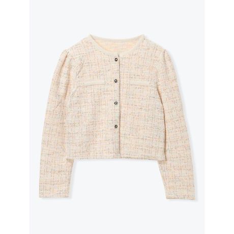 [型番:25580040486]上品な表情のツイード風素材が装いを華やかに引き立てるカーディガン。コンパクトな丈感でバランス良く着こなせます。デニムで大人カジュアルに、スカートで上品にも使える万能アイテムです。オンオフ問わず取り入れやすく、季節の変わり目にも活躍します。