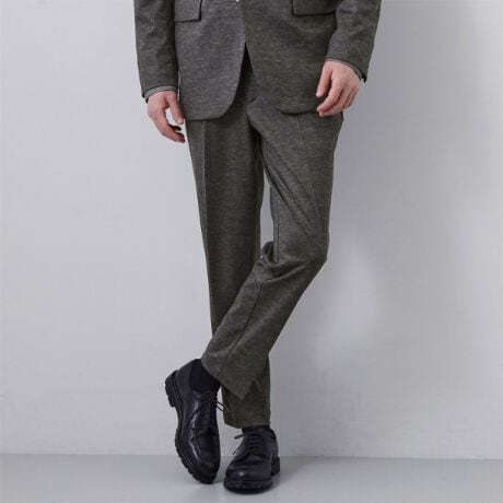 ウール調のマテリアルプリントをすることで、きっちり見えするけど着疲れしない素材を採用しました。
