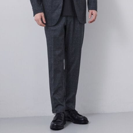 ウール調のマテリアルプリントをすることで、きっちり見えするけど着疲れしない素材を採用しました。