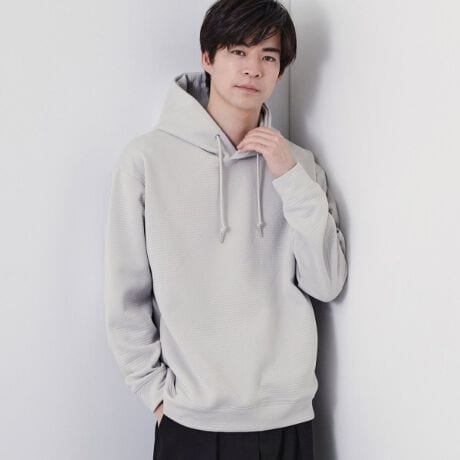 立体感のあるふくれジャカード素材に、さりげない柄を落とし込んだプルパーカー。