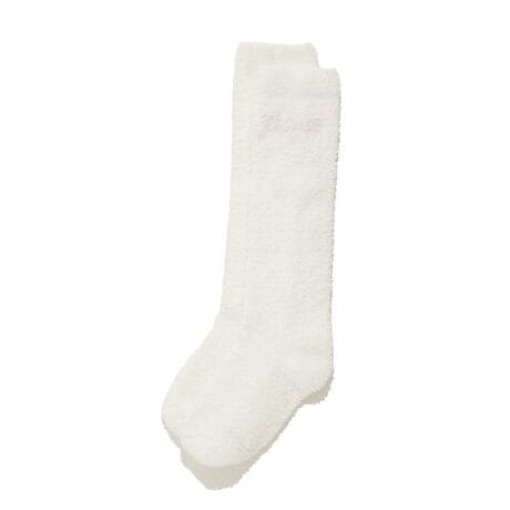キュートな色合いと、夢心地なふんわり感を味わえるふくらはぎ丈のソックス。もこもこした風合いのロゴ刺繍を大きめにあしらい、キャッチーに仕上げました。色は柔らかいオフホワイトとピンクの2色をご用意。ベビモコ×フェザーニットのルームウェアに合わせたり、同時期のハート柄チュールシリーズとコーディネートするのがおすすめです。