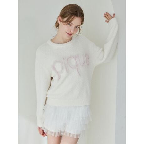 ふわふわした透け感がロマンティックな、チュール素材の春らしいルームウェアシリーズです。チュールを幾重にも重ねてボリューム感を出した華やかなショートパンツ。表地のチュール素材には小さなハート柄のオーロラカラーのハートプリントを施し、見る角度によってハート柄がきらっと浮き出て見えます。肌に当たる裏地はなめらかなカットソーを使用し、チクチクしないスムーズなはき心地に仕上げました。色はオフホワイトとピンクの2色展開。同シリーズのキャミソールとコーディネートしたり、同時期に展開するフリルロゴシリーズのニットと合わせてお楽しみください。