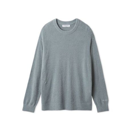 とろけるようになめらかな肌触りを味わえる‘スムーズィー’に、温度調整機能のある糸を使用した季節の変わり目にうれしいニットシリーズです。ラフになりすぎないゆったりとしたサイズ感で仕上げた、ベーシックなプルオーバー。シンプルな無地デザインと落ち着いた色合いで、着る人を選ばない1枚です。左袖口にワンポイントでロゴ刺繍を添えました。色はブルーとネイビーの2色展開。同シリーズのロングパンツや小物と合わせてお楽しみいただけます。