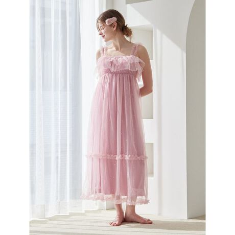 <b>【ハート柄がきらめくチュールのキャミソールワンピ】</b>