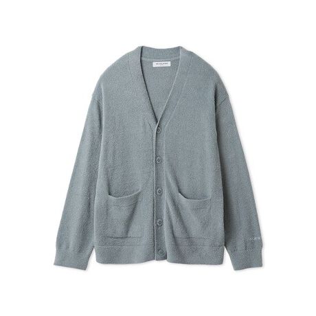 とろけるようになめらかな肌触りを味わえる‘スムーズィー’に、温度調整機能のある糸を使用した季節の変わり目にうれしいニットシリーズです。すっきりとしたVネックのベーシックなカーディガン。重ね着しやすいサイズ感とシンプルかつ落ち着いたデザインで、着る人を選ばない1枚です。あると何かと便利なフロントポケット付き。左袖口にワンポイントでロゴ刺繍を添えました。色はブルーとネイビーの2色展開。同シリーズのロングパンツや小物と合わせてお楽しみいただけます。