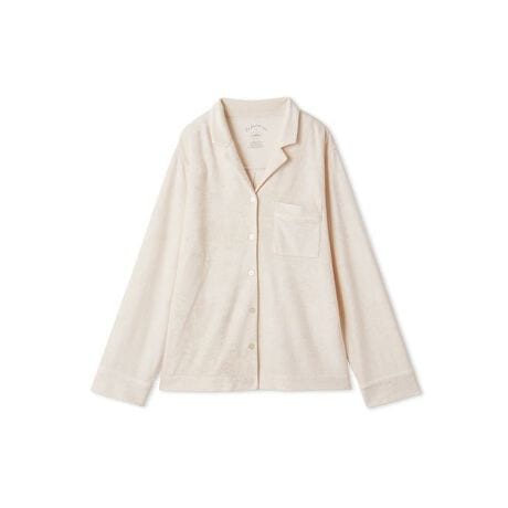 柔らかな風合いのパイル素材を使用した、シンプルな存在感のパジャマシリーズです。配色のパイピングを効かせた、年齢層を問わずお楽しみいただけるパジャマシャツ。ゆるやかな開襟シャツのデザインが、心地良いリラックス感を誘います。胸にワンポイントでポケットを付けました。色は落ち着きのあるベージュとダークグレーの2色をご用意。同シリーズのロングパンツを合わせたり、ギフトにもおすすめのアイテムです。