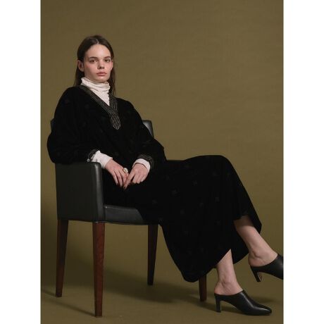 柔らかな光沢と上品な質感のベロア地に刺繍を施したAラインワンピース。