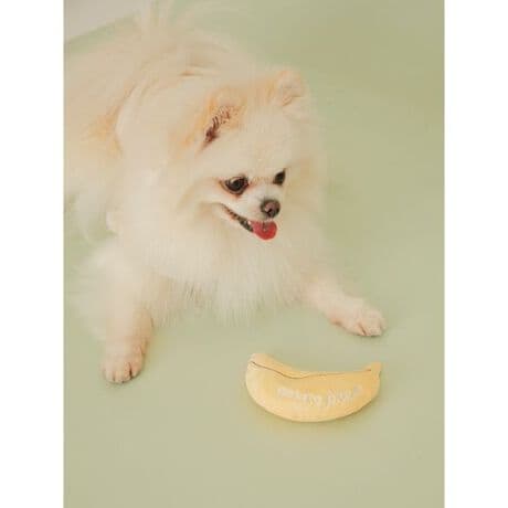 春らしいカラーリングのバナナとメロンをモチーフにしたDOGトイです。ふわっと軽い生地に、カサカサと音がする中材を入れました。ロゴ刺繍入りでギフトにもおすすめのアイテムです。色はイエローとグリーンの2色展開。ほかに、同シリーズのニットプルオーバーやカットソーもご用意しています。