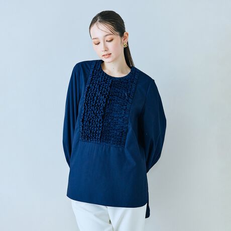 ・フロントのたっぷりとしたフリル使いがポイントのブラウス。