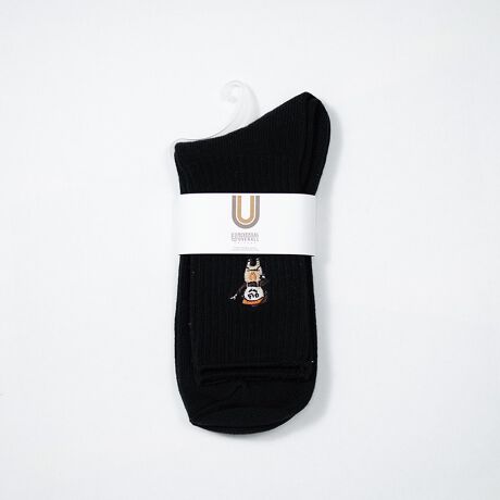 シンプルさの中にワンポイントの個性が光る、使い勝手抜群のリブソックスです。