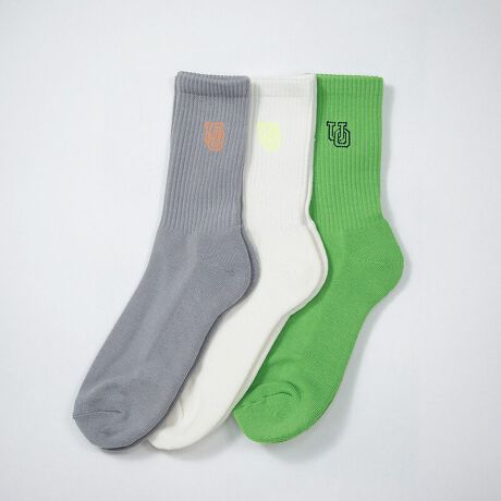 3P/クルー丈サイドUOロゴ/ ロゴソックス / 靴下