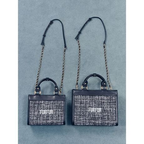 RWGB261513ツイードロゴトートバッグのサイズ感を一回り大きくアップデート。500mlのペットボトルがすっぽり隠れる、便利なサイズです。ハンドルの仕様をアップデートし、更に使いやすさにこだわりました。ショルダーチェーンは肩に当たる部分をフェイクレザーに切り替えることで肌当たりが良く、お好みの長さに調節も可能です。