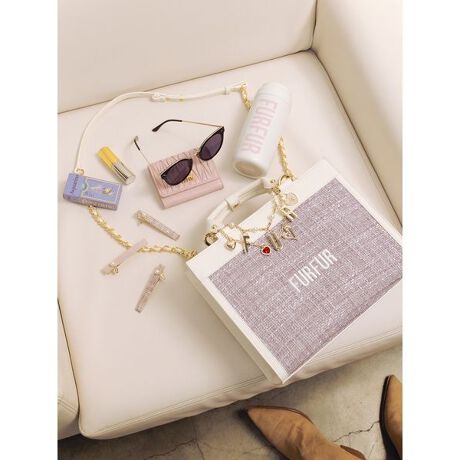 RWGB261513ツイードロゴトートバッグのサイズ感を一回り大きくアップデート。500mlのペットボトルがすっぽり隠れる、便利なサイズです。ハンドルの仕様をアップデートし、更に使いやすさにこだわりました。ショルダーチェーンは肩に当たる部分をフェイクレザーに切り替えることで肌当たりが良く、お好みの長さに調節も可能です。