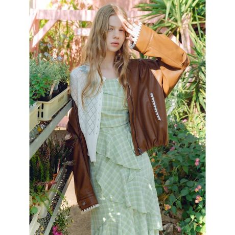綿ライクな素材感で各色ごとに異なるテキスタイルを使用しております。前身頃に動きのあるタックデザインを入れ、裾に流れるようなフリルをあしらったキャミソールのビスチェです。中に薄手のインナーを合わせていただけるように、うしろにシャーリングゴムを入れて程よく身体にフィットさせたサイズ感で、左脇のコンシールファスナーで着脱可能です。また後ろのリボンで肩紐の長さ調節をしていただけるのもポイント。同素材のRWFS261152とセットアップで着用し、ワンピースのように合わせるのもおすすめです。