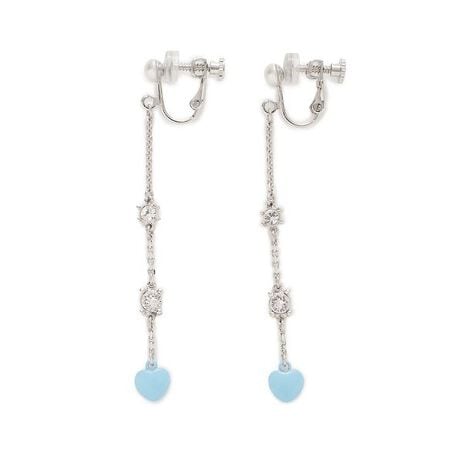 光を受けて繊細に輝くカットチェーンに小さなハートチャームをあしらったイヤリング。パールや爪付きクリスタルが華やかさを添え、動くたびにチェーンが揺れてきらめきます。ハートはパール調や鮮やかな赤・青などカラフルなカラーで展開しています。ロゴ入りの小サイズのボックス付き。