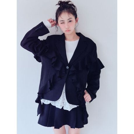 シワになりくく、さらっとした肌触りのきれいめな素材を使用。袖から裾にかけて同素材で作られたラッフルフリルを大胆に施したデザインジャケットです。ややオーバーサイズのシルエットがこなれた印象に仕上げてくれるのもポイント。テーラードのかっちりした印象を柔らかくフェミニンに落とし込んだFURFURらしい一着になっております。同素材のRWFS261077とセットアップでの着用もおすすめですが、コーディネートで他のアイテムとも合わせやすいようにベーシックカラーでご用意いたしました。