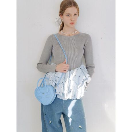 シンプルなリブニットにドット柄のバルーンペプラムがドッキングされた一枚。カーディガンやショート丈のトップスの中に仕込んでバルーンディテールを楽しむ着方もおすすめです。