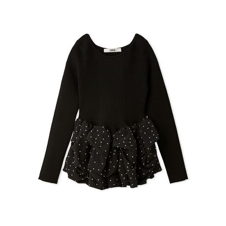 シンプルなリブニットにドット柄のバルーンペプラムがドッキングされた一枚。カーディガンやショート丈のトップスの中に仕込んでバルーンディテールを楽しむ着方もおすすめです。