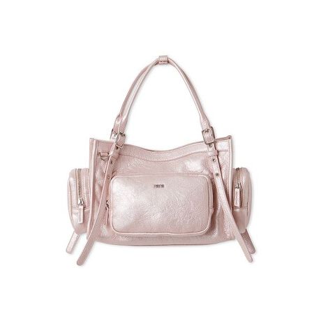 ヴィンテージ感のある柔らかなフェイクレザーを使用した、横長シルエットのトレンド感のあるバッグ。便利なアウトポケットを表面と両サイドに配置し、すべてファスナーで開閉可能になっています。ハンドルはバックルで長さ調節ができ、マグネットボタンで本体の開閉もスムーズ。チャームが付けられるDカンを付け、細部にもこだわった一品です。