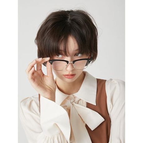 クラシカルな雰囲気を纏ったサーモントメガネ。上部はブローフレーム、下半分はメタルを組み合わせたデザインで、きちんと感と抜け感を絶妙に両立しました。オンでもオフでも使いやすい、毎日のスタイルにそっと寄り添う万能アイテムです。UVカット率99.9%のレンズを採用しており、機能面でも頼れる一本です。
