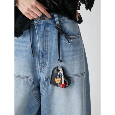 透明感のある【Love】モチーフに、お菓子のパーツがじゃらっと揺れる可愛さ満点のバッグチャーム。フェイクレザーのハート部分は鍵を収納できる仕様で、内側には伸びるリール付き。バッグに付けたまま鍵をサッと取り出せる、見た目だけでなく機能性にも優れたデザインです。