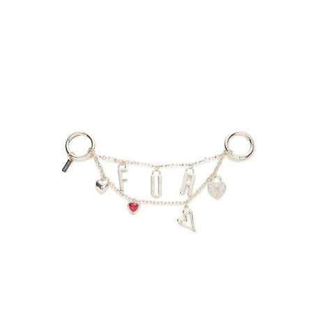 様々な形のハートチャームをチェーンでつなぎ、おもちゃのようなわくわく感を表現したバッグチャーム。定番のFURロゴは厚みのある重厚な仕上げで、存在感をプラス。バッグをデコレーションするのはもちろん、ボトムのベルトループに添えても遊び心あふれるスタイリングに。
