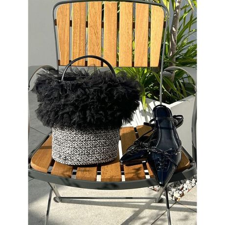 大人気のチュールバッグが、今シーズンは上品なサテンと抜け感のあるかご素材のコンビでアップデート。ライトな素材感に合わせ、今期はチュールをランダムに施すことで、よりエアリーでドラマティックなデザインに仕上げています。本体はバケツ型シルエットでマチを広めに取り、従来より収納力がアップ。ワンハンドル仕様で持ち面もキャッチーに映え、ショルダー付きで2WAYで楽しめるのも嬉しいポイント。内ポケットも備え、デザイン性と実用性を兼ね備えた今季の本命バッグです。