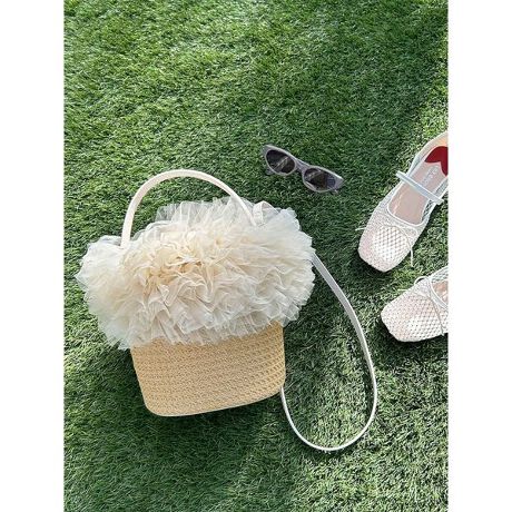 <b>【サテンとかご素材バリエーションのエアリーチュールバケツバッグ】</b>