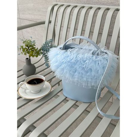 <b>【サテンとかご素材バリエーションのエアリーチュールバケツバッグ】</b>