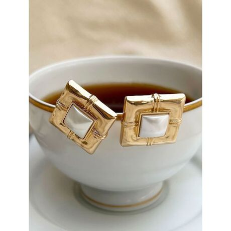 ヴィンテージ調のモチーフを、今の気分に合うシルエットとサイズ感でオリジナル作成したイヤリング。落ち着いた濃いめのメッキカラーで、より深みのあるヴィンテージムードを演出しています。大振りながら安定感のあるイヤリング仕様で、ストレスの少ない着用感も魅力。潔く存在感を放つドロップメタルデザインのA、パールとのコントラストが上品なポイントになるB、GLD×SIVのミックスカラーが今季らしいモード感を引き立てるCの3タイプ展開。スタイリングの主役として活躍する、特別感のあるイヤリングです。