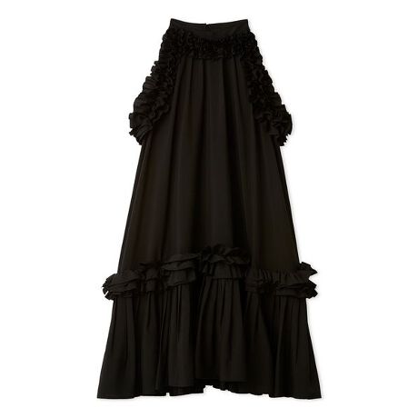 裾プリーツや重ねフリルが華やかなFURFURらしいフェミニンなミニ丈ドレス。アメスリデザインで程よく肌見せしつつ、Aラインシルエットで軽やかな印象に。後ろはボタン開きなので着脱が簡単にできるのもポイント。色展開は華やかなLBLUとベーシックなBLK・BRWでご用意しました。