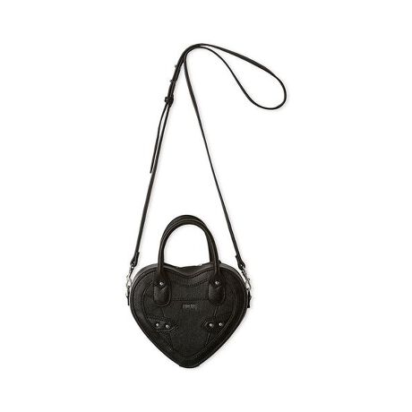コーディネートのポイントになる、ハート型デザインが目を引くバッグ。丸みのあるハンドルと、取り外し可能なショルダー付きでアレンジも自在です。ロゴカシメや装飾カシメがディテールにアクセントを加えています。内側には合皮のマチ付きで実用性も兼備。コンパクトながら収納力も備えたアイテムです。FURFURらしい華やかなカラーからベーシックなシルバーやブラックまで幅広く揃えました。