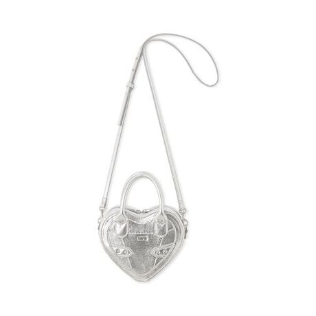 コーディネートのポイントになる、ハート型デザインが目を引くバッグ。丸みのあるハンドルと、取り外し可能なショルダー付きでアレンジも自在です。ロゴカシメや装飾カシメがディテールにアクセントを加えています。内側には合皮のマチ付きで実用性も兼備。コンパクトながら収納力も備えたアイテムです。FURFURらしい華やかなカラーからベーシックなシルバーやブラックまで幅広く揃えました。
