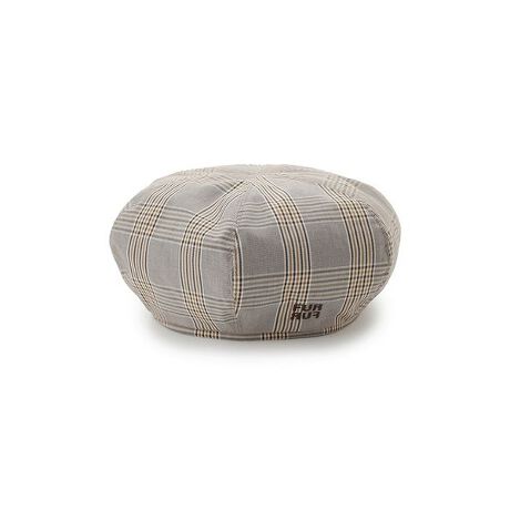 ロゴ刺繍をあしらった布帛素材のベレー帽です。IVR、BLKはツイード素材、BRWはチェック柄の生地を使用。上品なデザインと素材でコーディネートを引き締めてくれるアイテムです。